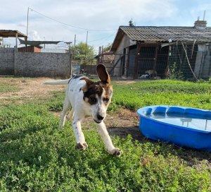 Betti ist unser Hundemädchen mit dem lustig gepunkteten Fell und einer wunderschönen braunen Gesichtszeichnung.